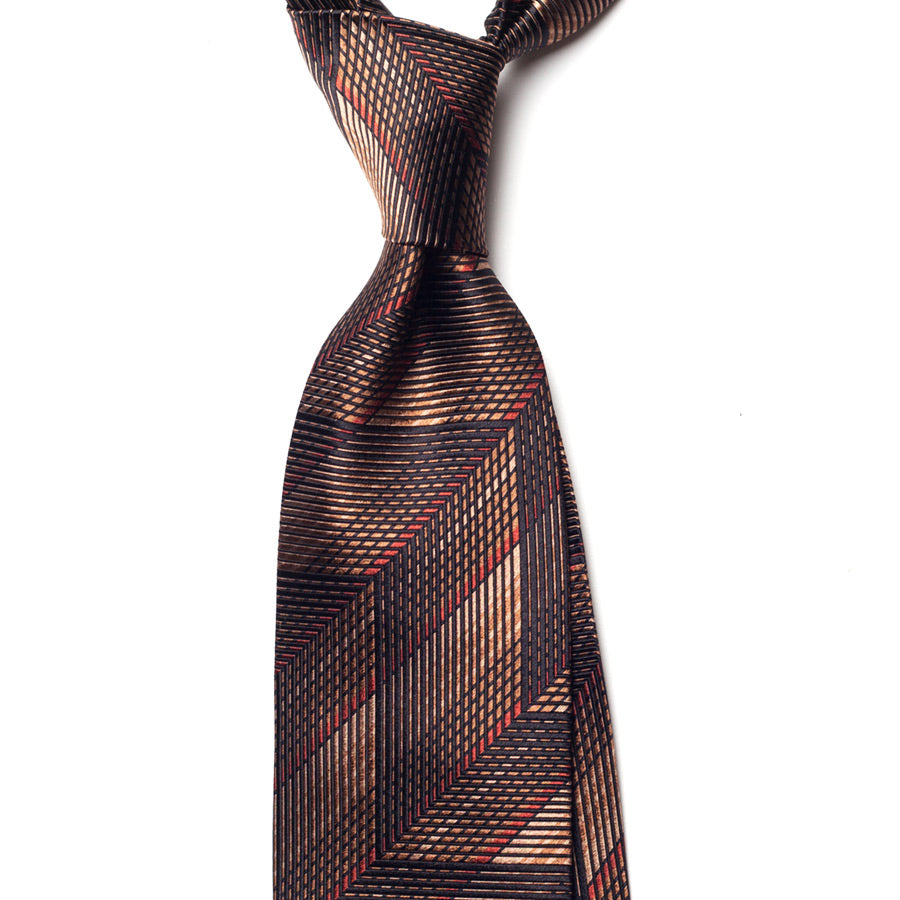 Introducing our latest addition to our collection, a stunning jacquard silk tie featuring a beautiful vintage geometric design. Handcrafted in Bucharest, this tie boasts a lightweight hand-rolled three-fold construction, making it the perfect accessory for any season. The silk used in this tie is sourced from the renowned Como region in Italy, known for its centuries-old silk manufacturing tradition. The family-run weavers of this region are renowned for their superb silk quality and beautiful designs, which serve as inspiration for our own creations. Add a touch of elegance to any outfit with this one-of-a-kind handcrafted silk tie.