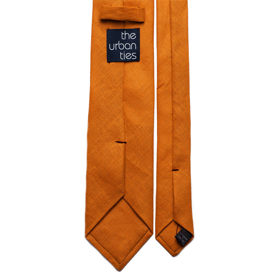 Introducing our latest addition to our collection, a stunning solid linen in burnt orange. 100% Como linen. Handcrafted in Bucharest, this tie boasts a lightweight three-fold construction with self tipped edges, making it the perfect accessory for any season. The silk used in this tie is sourced from the renowned Como region in Italy, known for its centuries-old silk manufacturing tradition. The family-run weavers of this region are renowned for their superb silk quality and beautiful designs, which serve as inspiration for our own creations. Add a touch of elegance to any outfit with this one-of-a-kind handcrafted silk tie.