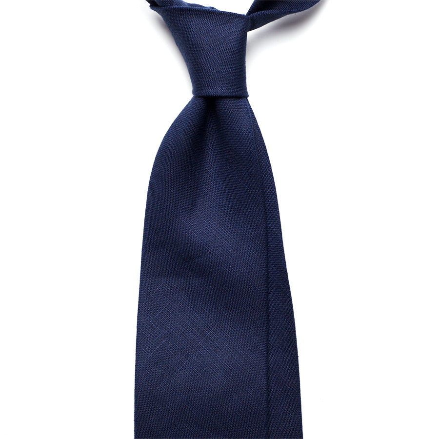 Introducing our latest addition to our collection, a stunning solid linen in dark blue. 100% Como linen. Handcrafted in Bucharest, this tie boasts a lightweight three-fold construction with self tipped edges, making it the perfect accessory for any season. The silk used in this tie is sourced from the renowned Como region in Italy, known for its centuries-old silk manufacturing tradition. The family-run weavers of this region are renowned for their superb silk quality and beautiful designs, which serve as inspiration for our own creations. Add a touch of elegance to any outfit with this one-of-a-kind handcrafted silk tie.
