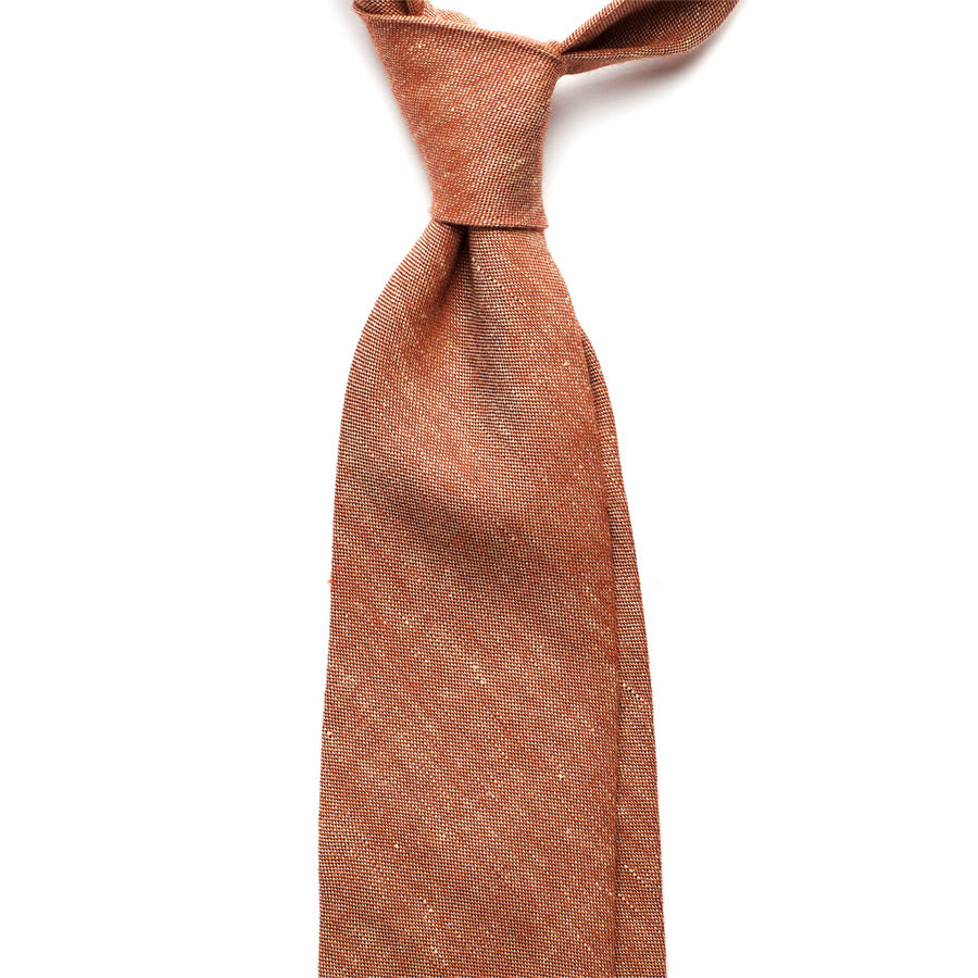 Introducing our latest addition to our collection, a stunning solid linen in light orange. 100% Como linen. Handcrafted in Bucharest, this tie boasts a lightweight three-fold construction with self tipped edges, making it the perfect accessory for any season. The silk used in this tie is sourced from the renowned Como region in Italy, known for its centuries-old silk manufacturing tradition. The family-run weavers of this region are renowned for their superb silk quality and beautiful designs, which serve as inspiration for our own creations. Add a touch of elegance to any outfit with this one-of-a-kind handcrafted silk tie.