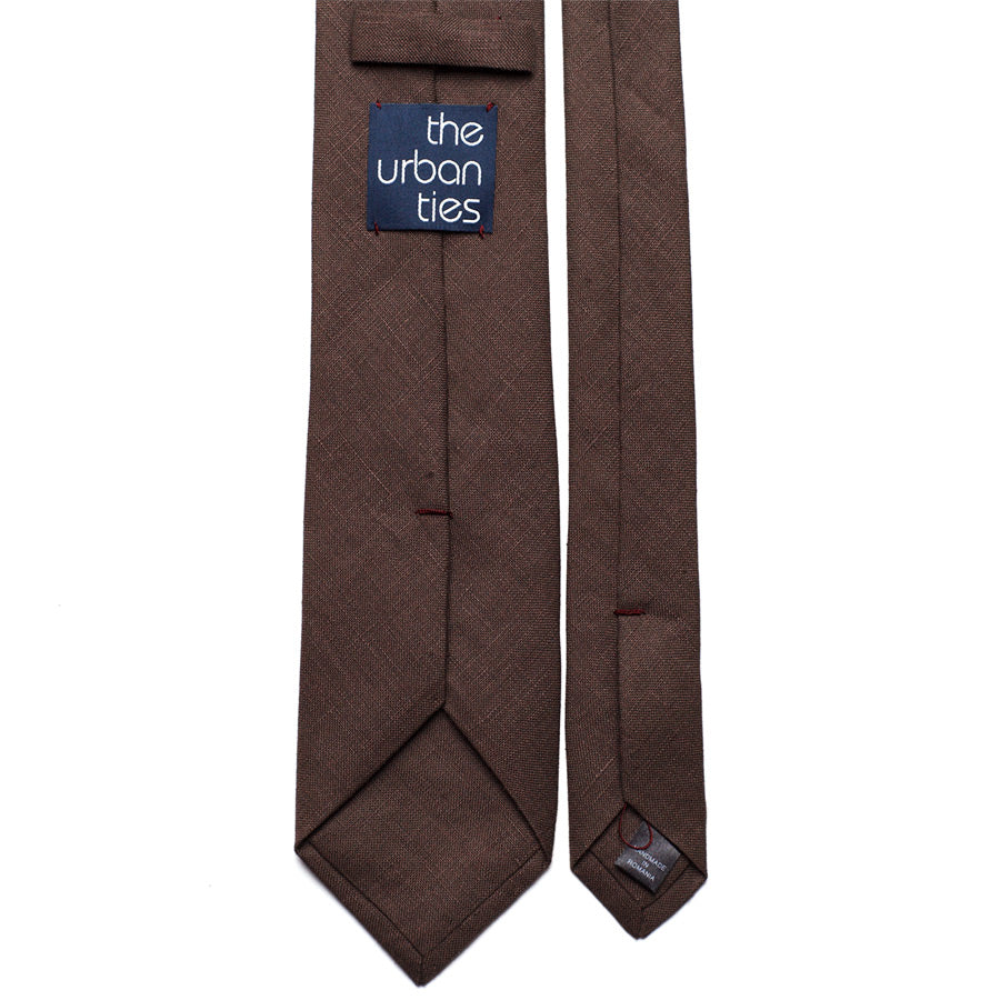 Introducing our latest addition to our collection, a stunning solid linen in dark brown. 100% Como linen. Handcrafted in Bucharest, this tie boasts a lightweight three-fold construction with self tipped edges, making it the perfect accessory for any season. The silk used in this tie is sourced from the renowned Como region in Italy, known for its centuries-old silk manufacturing tradition. The family-run weavers of this region are renowned for their superb silk quality and beautiful designs, which serve as inspiration for our own creations. Add a touch of elegance to any outfit with this one-of-a-kind handcrafted silk tie.