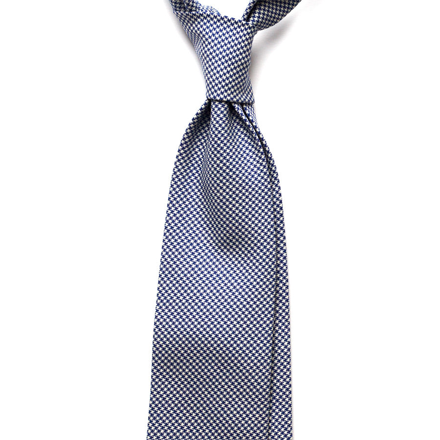 Introducing our latest addition to our collection, a stunning blue wool tie. This fabric is a vintage Vitale Barberis Canonico wool and it was sourced during our last buying trip in Milano, from the famous Il Vecchio Drappiere wool merchant. Since it's a deadstock, we have a limited number of ties available for production. Handcrafted in Bucharest, this tie boasts a lightweight three-fold construction with handrolled edges, making it the perfect accessory for any season.