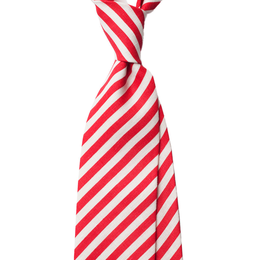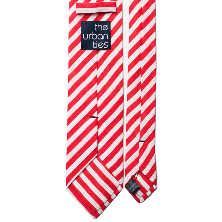 Introducing our latest addition to our collection, a stunning linen tie with red stripes. 100% Como linen. Handcrafted in Bucharest, this tie boasts a lightweight three-fold construction with self tipped edges, making it the perfect accessory for the hot season. The linen used in this tie is sourced from the renowned Como region in Italy, known for its centuries-old silk manufacturing tradition. The family-run weavers of this region are renowned for their superb silk quality and beautiful designs, which serve as inspiration for our own creations. Add a touch of elegance to any outfit with this one-of-a-kind handcrafted linen tie.