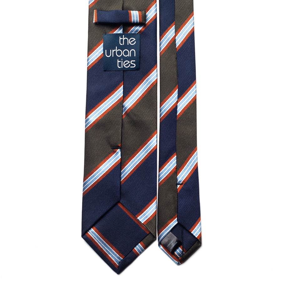 Introducing our latest addition to our collection, a stunning repp stripe silk tie featuring a beautiful vintage design. Handcrafted in Bucharest, this tie boasts a lightweight self-tipped three-fold construction, making it the perfect accessory for any season. The silk used in this tie is sourced from the renowned Como region in Italy, known for its centuries-old silk manufacturing tradition. The family-run weavers of this region are renowned for their superb silk quality and beautiful designs, which serve as inspiration for our own creations. Add a touch of elegance to any outfit with this one-of-a-kind handcrafted silk tie.