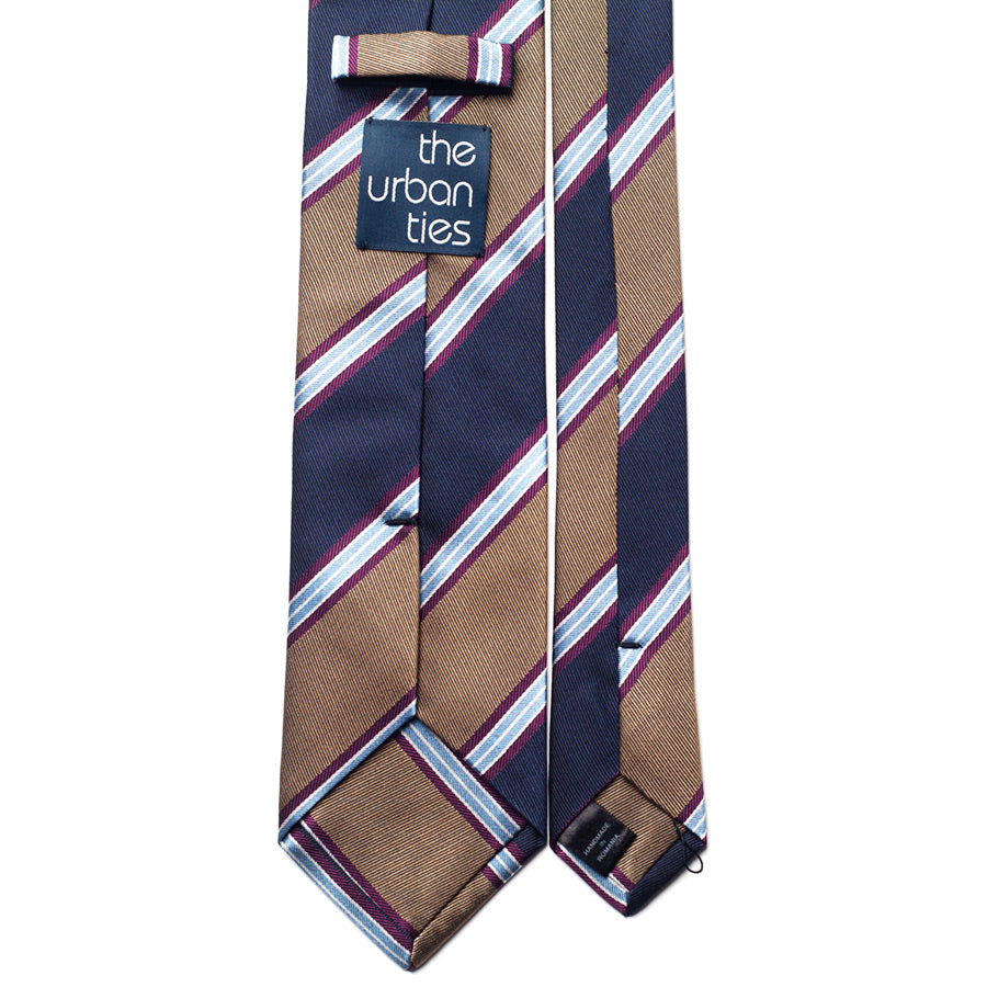 Introducing our latest addition to our collection, a stunning repp stripe silk tie featuring a beautiful vintage design. Handcrafted in Bucharest, this tie boasts a lightweight self-tipped three-fold construction, making it the perfect accessory for any season. The silk used in this tie is sourced from the renowned Como region in Italy, known for its centuries-old silk manufacturing tradition. The family-run weavers of this region are renowned for their superb silk quality and beautiful designs, which serve as inspiration for our own creations. Add a touch of elegance to any outfit with this one-of-a-kind handcrafted silk tie.