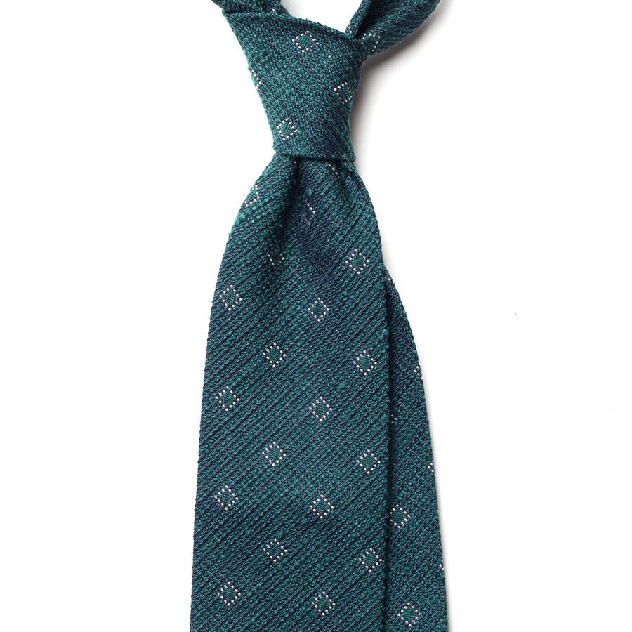 Introducing our latest addition to our collection, a stunning geometric shantung silk tie in green. Handcrafted in Bucharest, this tie boasts a lightweight three-fold construction with hand-rolled edges, making it the perfect accessory for any season. The silk used in this tie is sourced from the renowned Como region in Italy, known for its centuries-old silk manufacturing tradition. The family-run weavers of this region are renowned for their superb silk quality and beautiful designs, which serve as inspiration for our own creations. Add a touch of elegance to any outfit with this one-of-a-kind handcrafted silk tie.