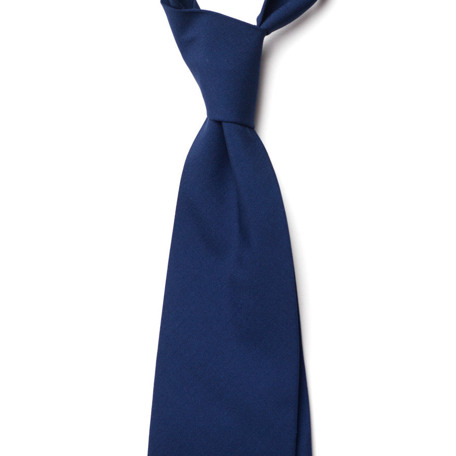 Introducing our latest addition to our collection, a stunning navy wool/silk tie. This fabric is a vintage Loro Piana wool/silk and it was sourced during our last buying trip in Milano, from the famous Il Vecchio Drappiere wool merchant. Since it's a deadstock, we have a very limited number of ties available for production. Handcrafted in Bucharest, this tie boasts a lightweight three-fold construction with handrolled edges, making it the perfect accessory for any season.