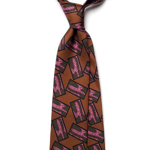 Introducing our latest addition to our collection, a stunning vintage medallion silk tie in brown. Handcrafted in Bucharest, this tie boasts a lightweight three-fold construction with hand-rolled edges, making it the perfect accessory for the warm season. The cotton used in this tie is sourced from the renowned Como region in Italy, known for its centuries-old silk manufacturing tradition. The family-run weavers of this region are renowned for their superb silk quality and beautiful designs, which serve as inspiration for our own creations. Add a touch of elegance to any outfit with this one-of-a-kind handcrafted silk tie.