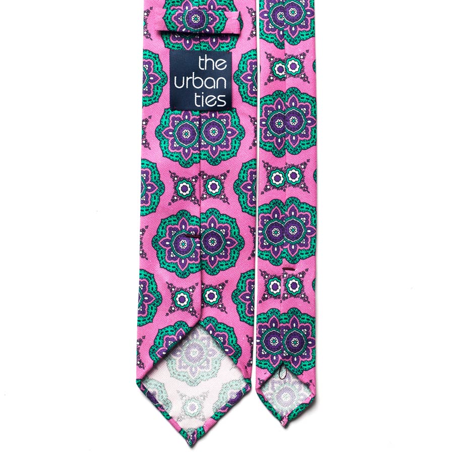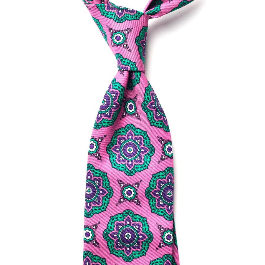 Introducing our latest addition to our collection, a stunning printed silk tie featuring a beautiful vintage medallion design. Handcrafted in Bucharest, this tie boasts a lightweight hand-rolled three-fold construction, making it the perfect accessory for any season. The silk used in this tie is sourced from the renowned Como region in Italy, known for its centuries-old silk manufacturing tradition. The family-run weavers of this region are renowned for their superb silk quality and beautiful designs, which serve as inspiration for our own creations. Add a touch of elegance to any outfit with this one-of-a-kind handcrafted silk tie.