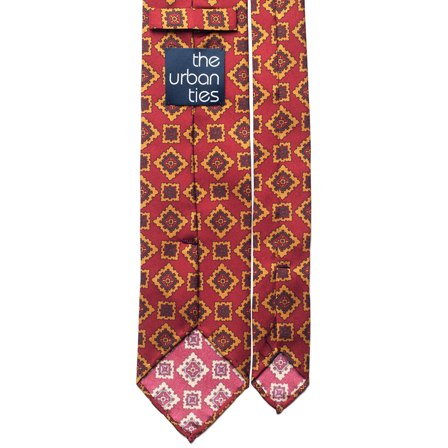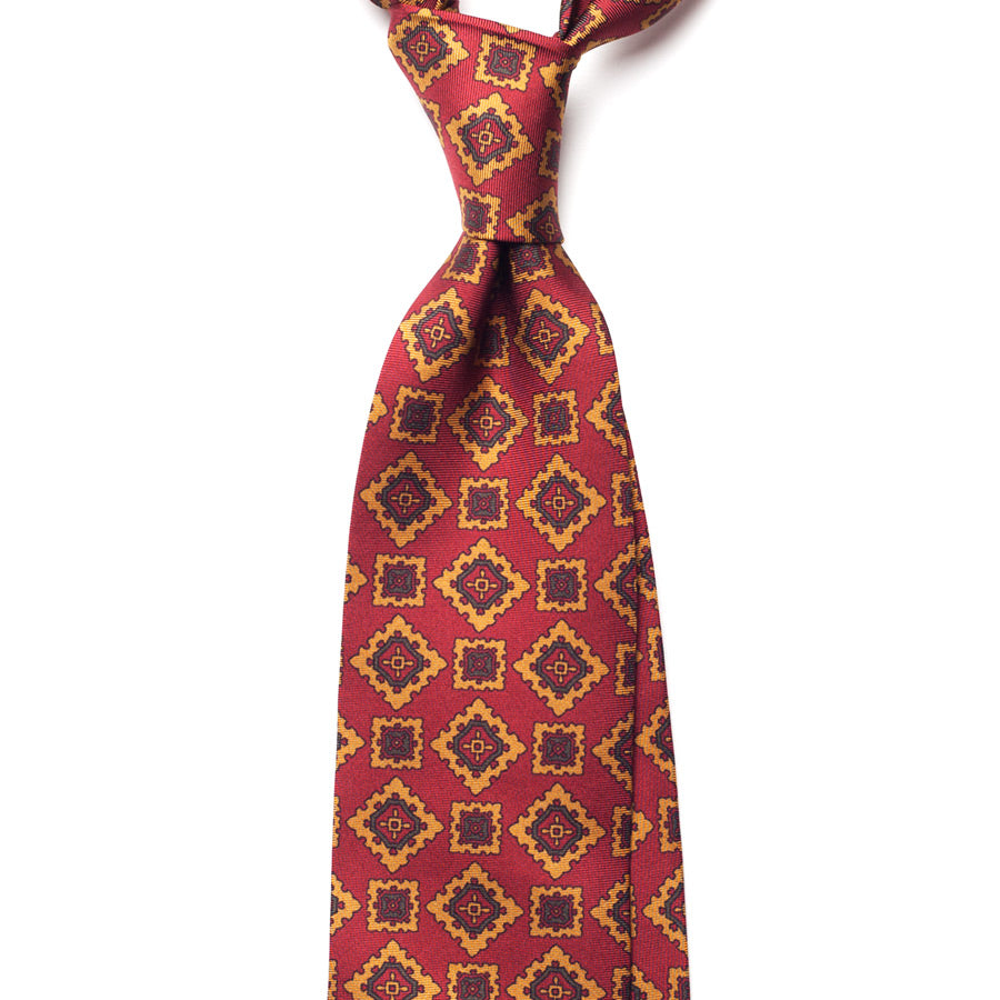 Introducing our latest addition to our collection, a stunning printed silk tie featuring a beautiful vintage medallion design. Handcrafted in Bucharest, this tie boasts a lightweight hand-rolled three-fold construction, making it the perfect accessory for any season. The silk used in this tie is sourced from the renowned Como region in Italy, known for its centuries-old silk manufacturing tradition. The family-run weavers of this region are renowned for their superb silk quality and beautiful designs, which serve as inspiration for our own creations. Add a touch of elegance to any outfit with this one-of-a-kind handcrafted silk tie.